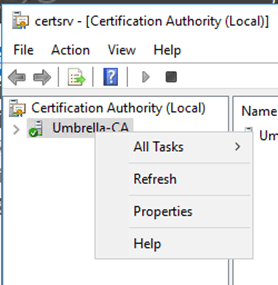 Right click on the CA server node and click on Properties. |