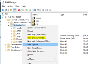Right-click on domain.local node and click on New Alias (CNAME) |