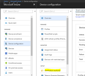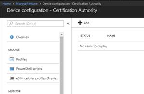 Go to the Microsoft Intune portal -> Device Configuration -> Certificate Authority. |
