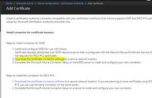 “The Microsoft Intune Certificate Connector must be installed on a separate Windows server. It can’t be installed on the issuing Certificate Authority (CA). It must also be installed on the same server as the Network Device Enrollment Service (NDES) role.”