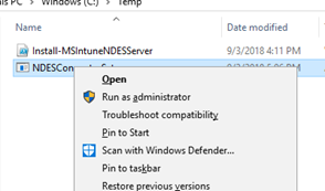 Save the script as Install-MSIntuneNDESServer.ps1 in a directory. |