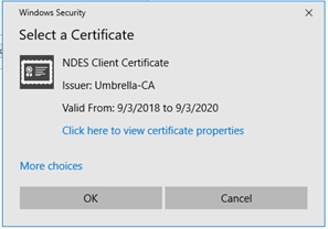 You have to select NDES Client Certificate. Click on the Ok button. |