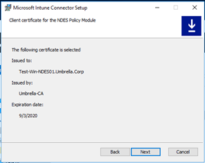 You got 2 certificates, one for the IIS web server and one for the NDES Intune connector. Then you need also a certificate for enrolling the certificates to the managed devices. Before that, you have to create 2 different templates. The one in my blog is NDESServer and the other is NDESIntune. The IIS Web Server and NDES Client Certificates were enrolled based on NDESServer template, but both two have different values (see DNS values). NDESIntune will be used for enrolling the certificates to managed devices. As you can see in the PowerShell script for installing the NDES server, you see that NDES will use the NDESIntune template.