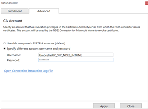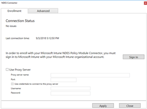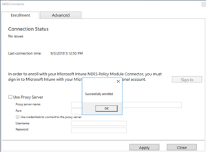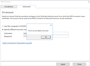 Click on the Ok button and click on the Close button to close the NDES Connector window. |
