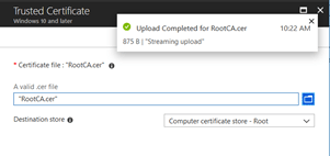 Browse to your exported RootCA.cer file. Click on the Ok button if the upload was successful.