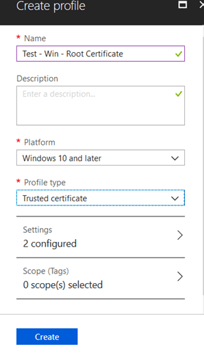 The last part of the blog series. For enrolling the certificates to managed devices, you have to create 2 different profiles. The trusted certificate profile will be needed if you are creating a SCEP profile. So, the first thing is creating a Trusted Certificate profile in Microsoft Intune.