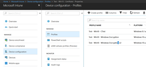 Go to the Intune portal -> Device configuration -> Profiles and click on the Create Profile button.