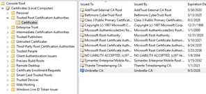 Go to Certificate (local computer) -> Trusted Root Certification Authorities -> Certificates.